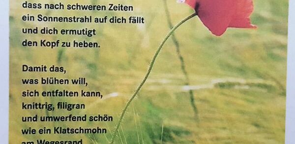 „Und wenn ich wüsste, dass die Welt morgen untergeht, so würde ich noch heute einen Baum pflanzen.“ Martin Luther spricht von Hoffnung, vom Hoffen auf eine Zukunft.Wie wichtig dieses Hoffen ist, spüre ich in meinem